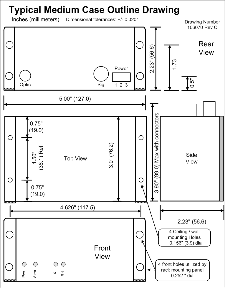 Products with the Medium case outline occupy two position in the rack mounting panels.